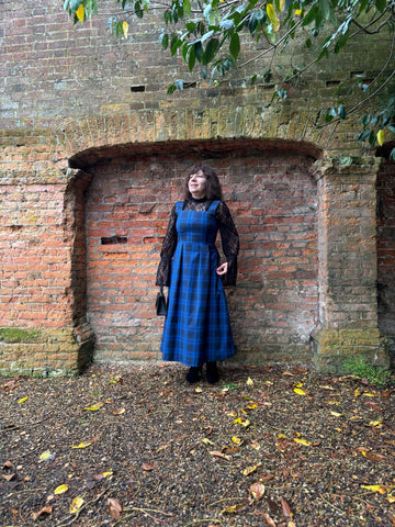 The Stella Dress is a vintage-inspired pinafore made from a heavyweight Waterproof Luxury Tartan in royal and deep blue tones. With a relaxed, easy-to-layer silhouette, it’s designed to pair beautifully with knitwear, blouses, or simply worn on its own through the seasons.
